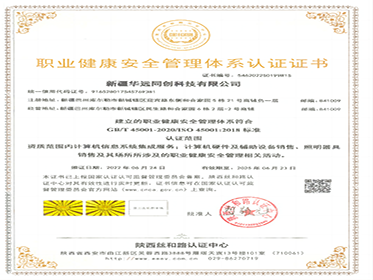 職業(yè)健康安全管理體系認(rèn)證證書